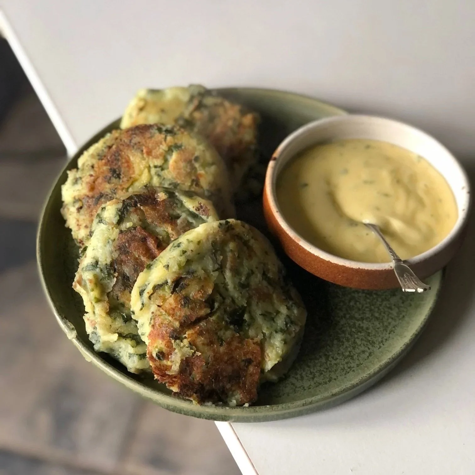 Powercut Potato Cakes with Radish Leaves & Sorrel Mayo